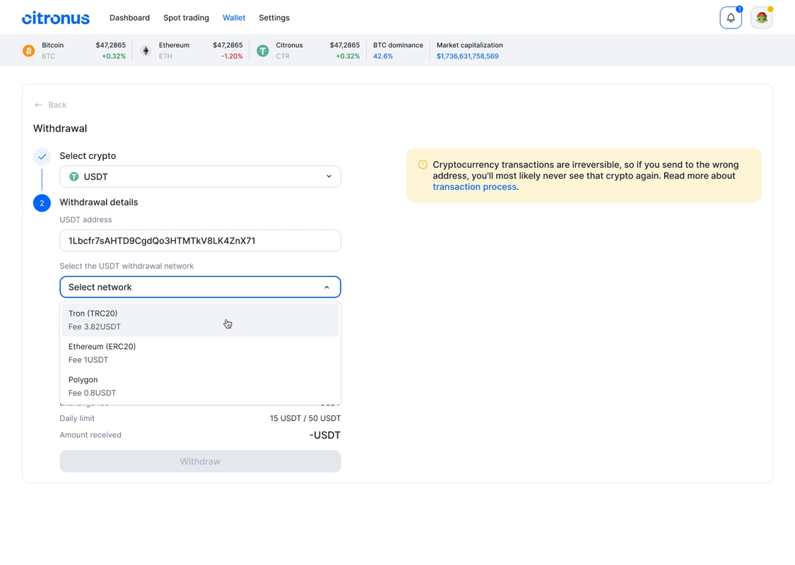 У нас будет доступно более 80 монет для торговли, и для ввода и вывода средств обязательно потребуется терминал.
