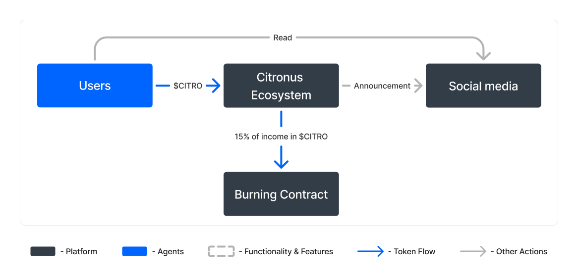 Чтобы предотвратить падение стоимости токена $CITRO из-за инфляции, платформа будет регулярно уменьшать общее количество токенов в обращении.